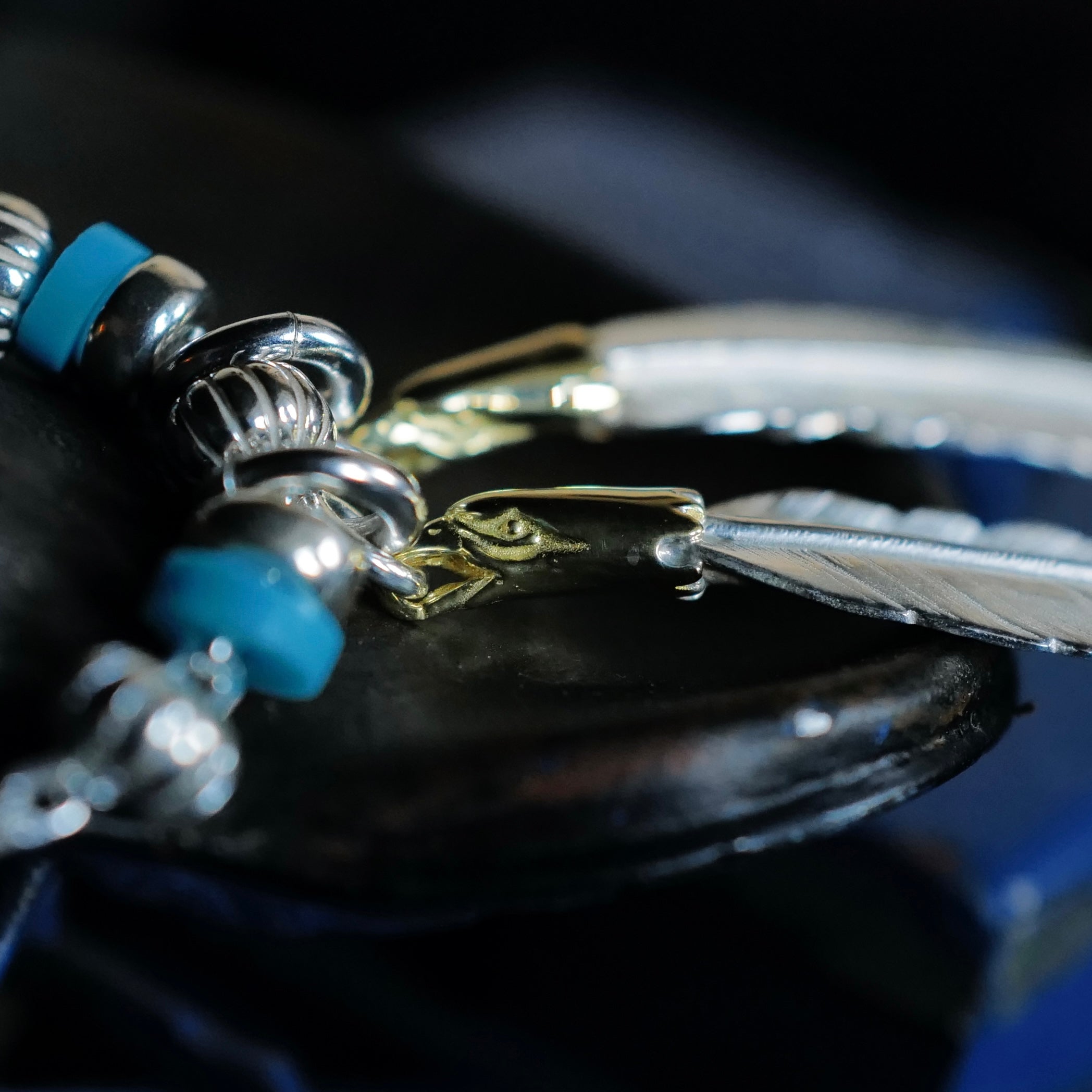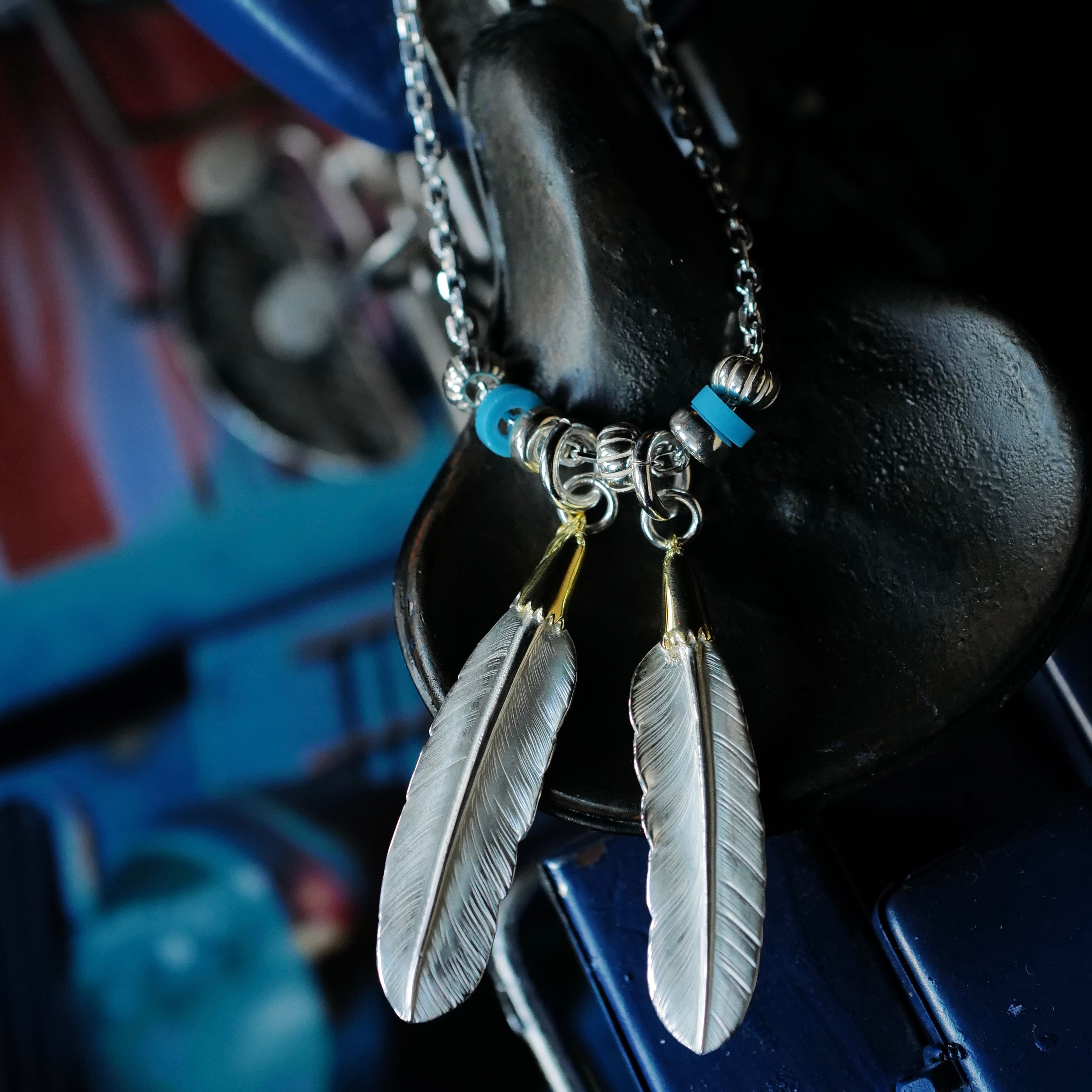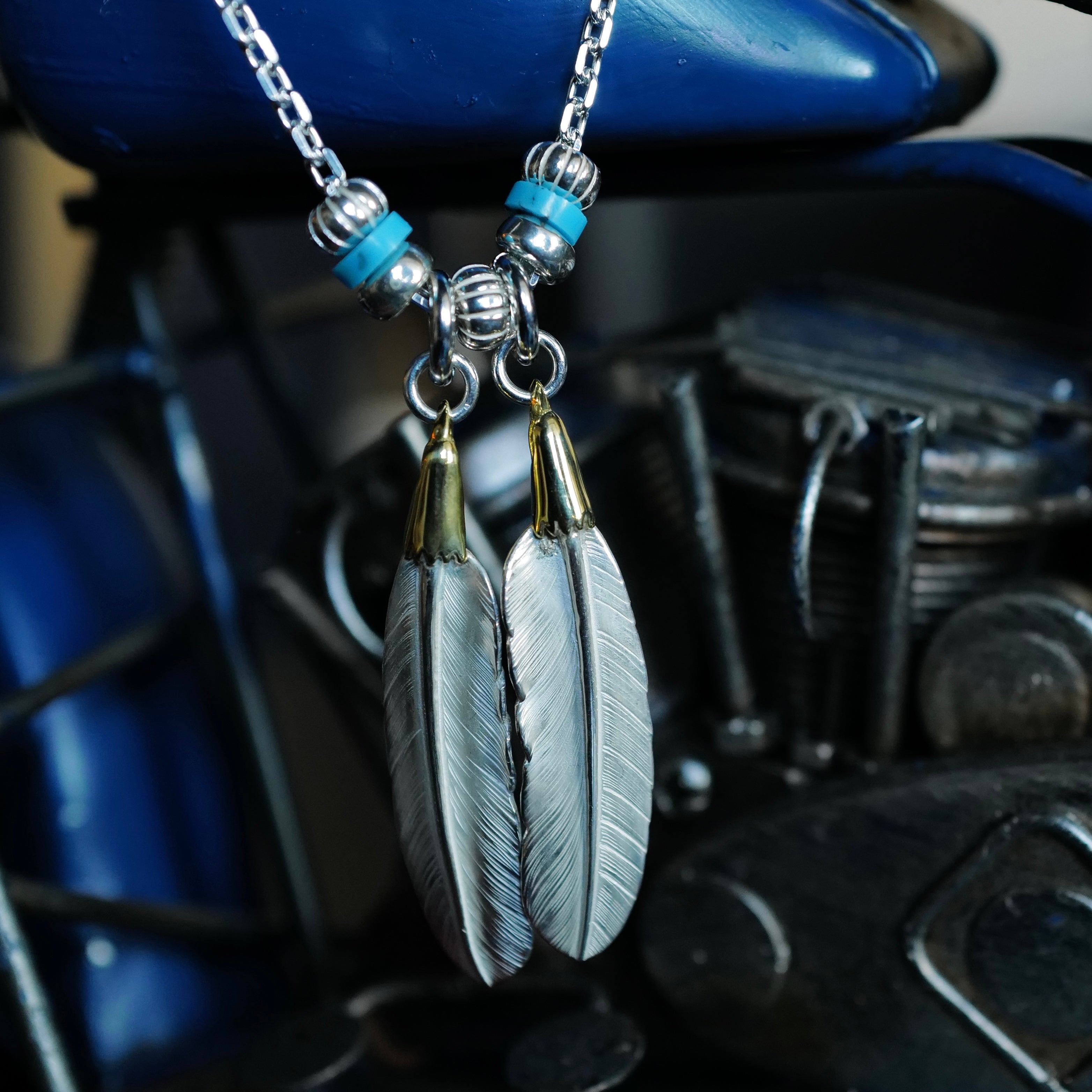 - Two "18k Gold Eagle Head" Feather Pendants ( 4.9cm x1.1cm)