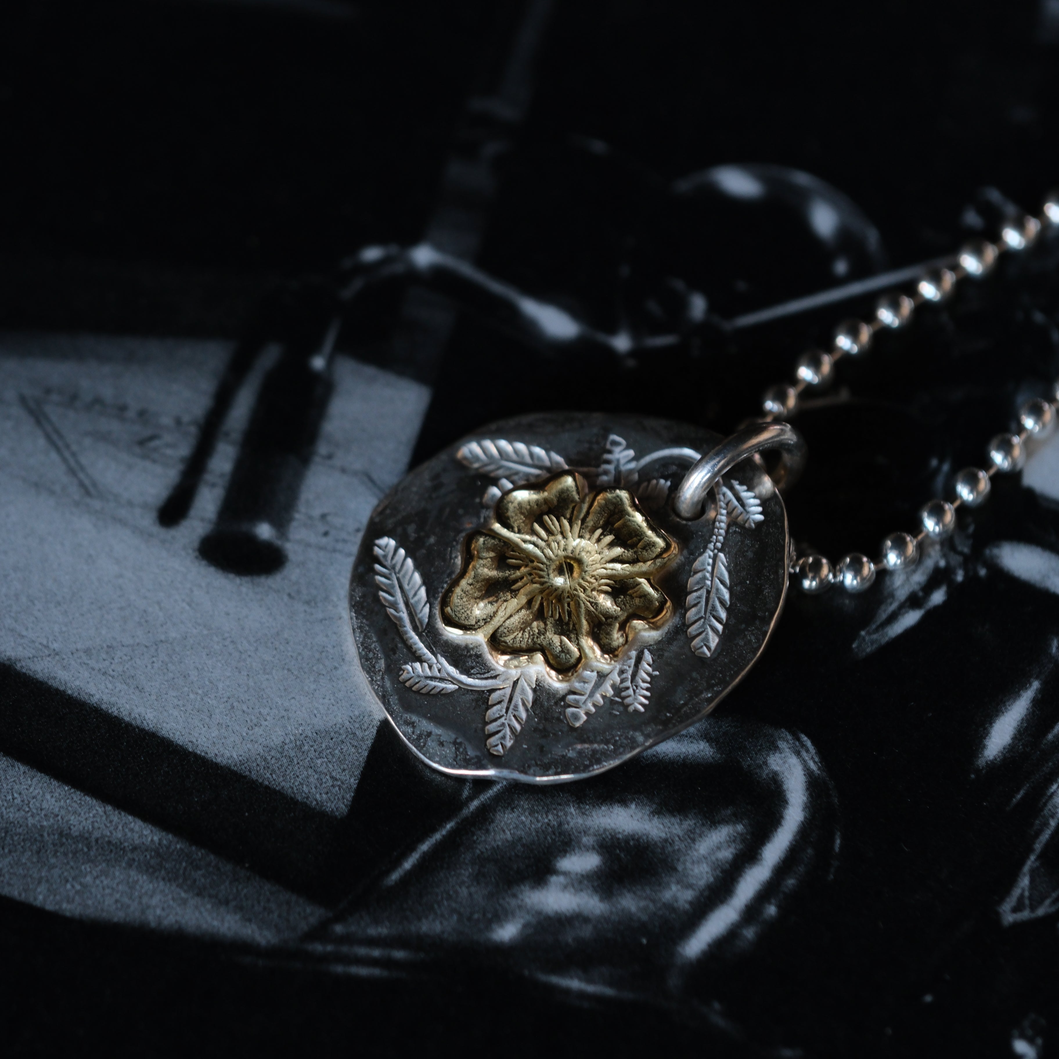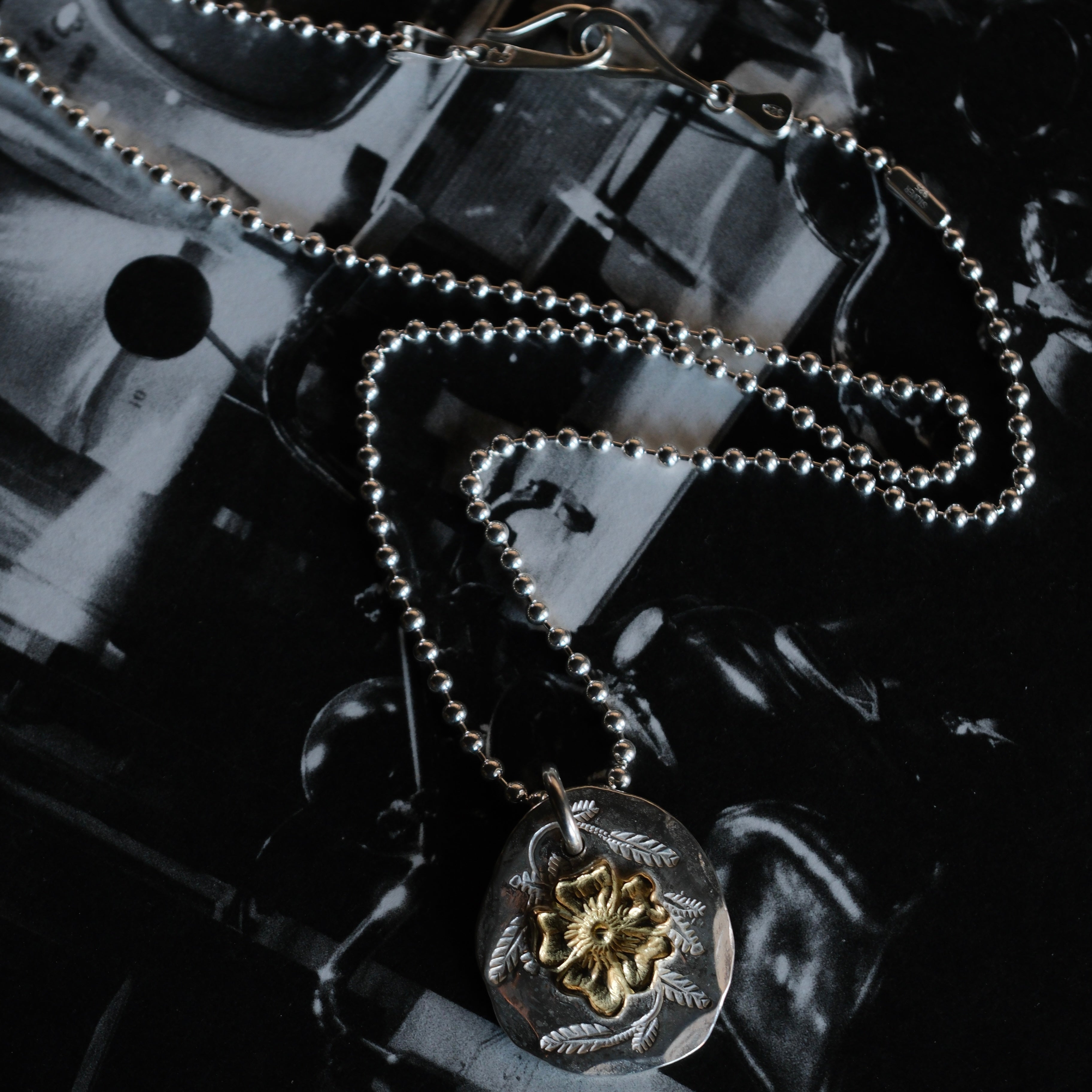 Larry Smith Karakusa Leaf Stamped Rose Necklace